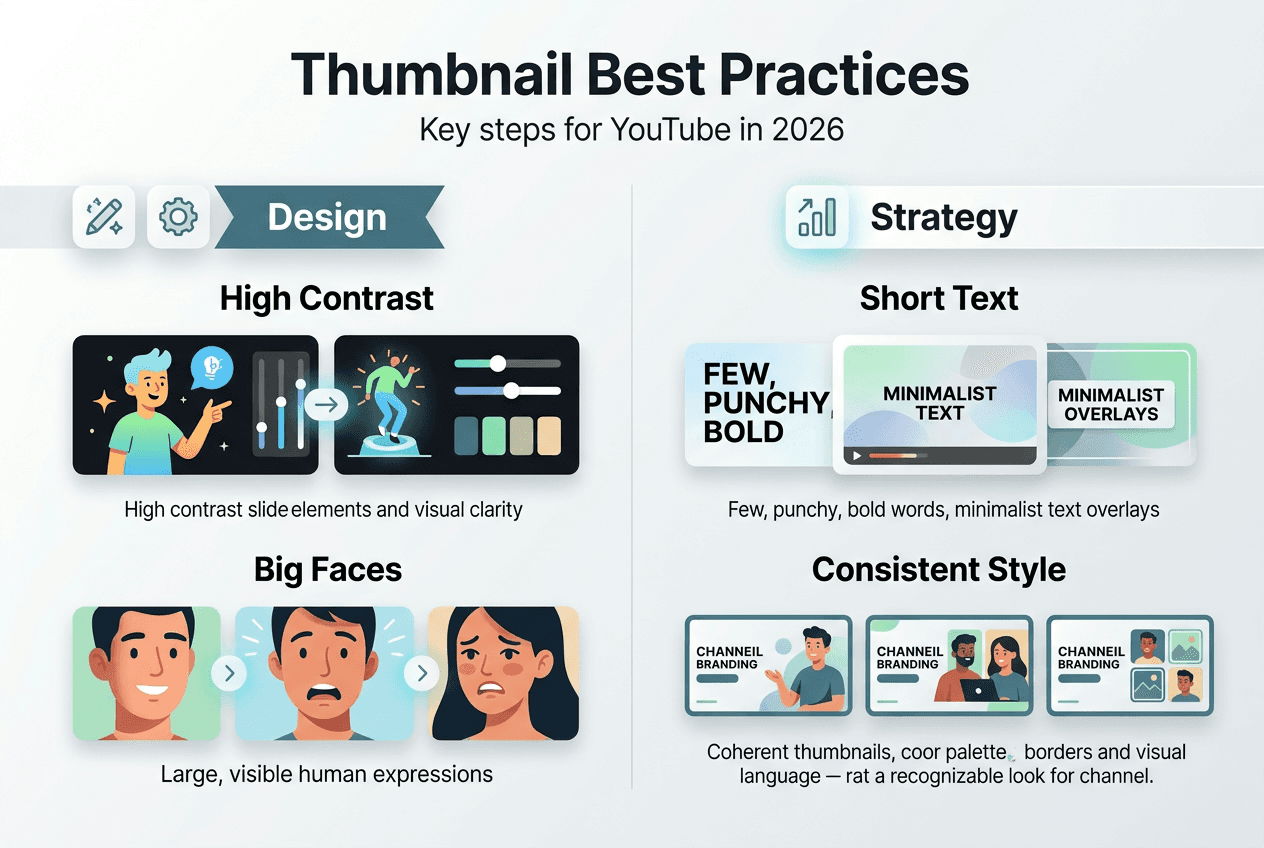 Our YouTube thumbnail tips 2026 resource provides specific examples for each content category with visual comparisons.